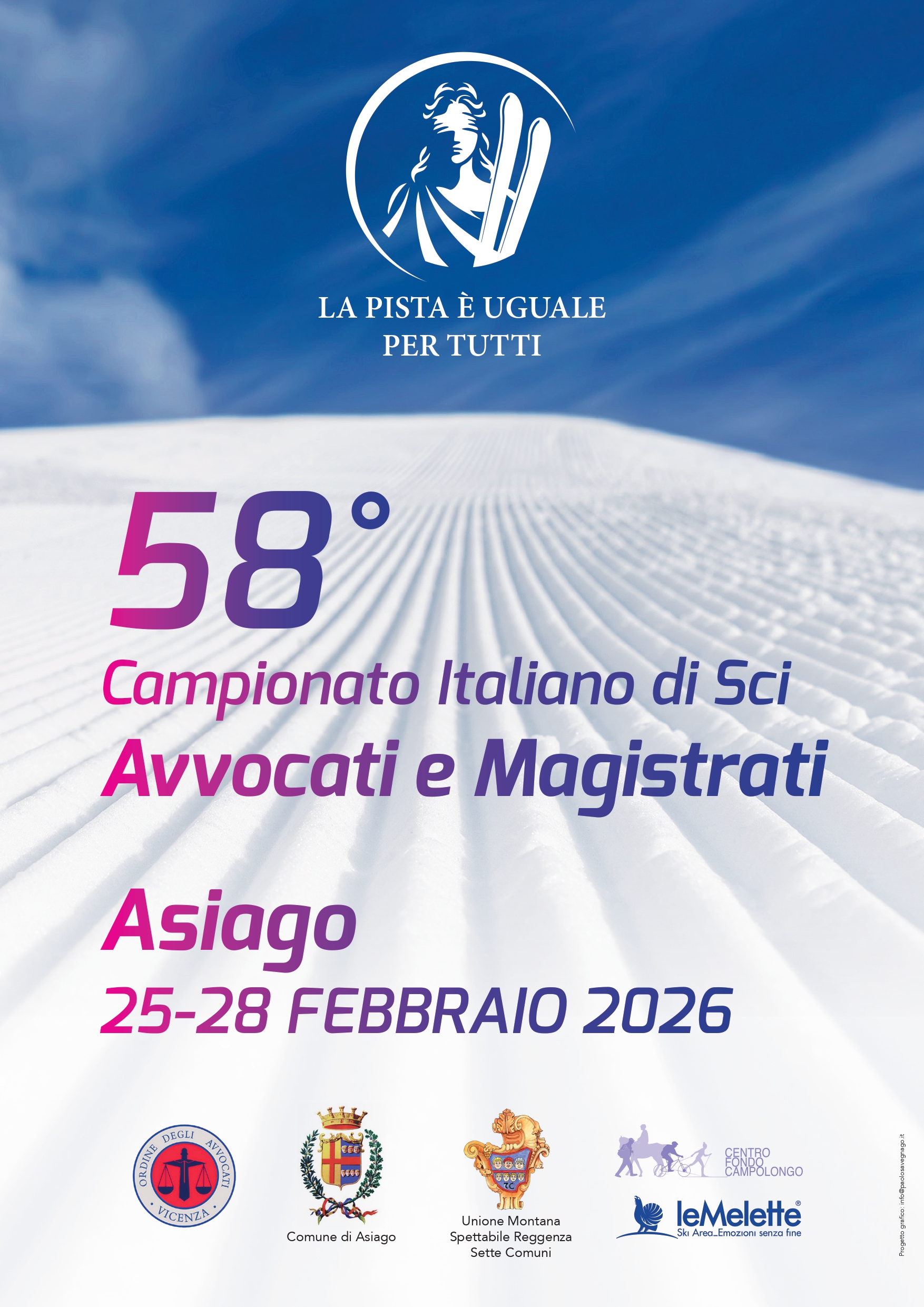 L’Ordine degli Avvocati di Vicenza organizza il 58° Campionato Italiano di Sci Avvocati e Magistrati dal 25 al 28 febbraio 2026 ad Asiago (VI). In allegato il programma completo
