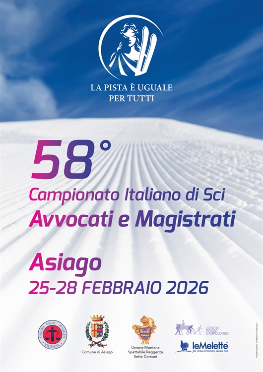 L’Ordine degli Avvocati di Vicenza organizza il 58° Campionato Italiano di Sci Avvocati e Magistrati dal 25 al 28 febbraio 2026 ad Asiago (VI). In allegato il programma completo